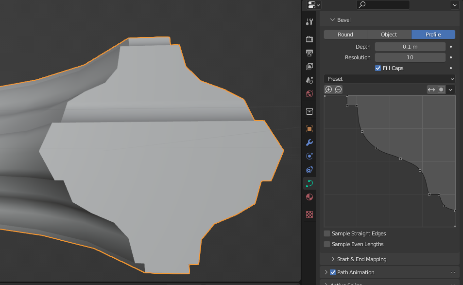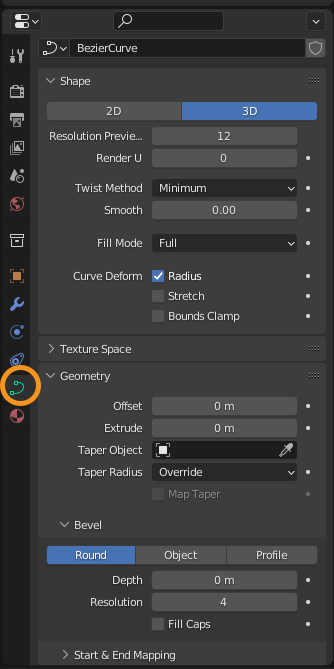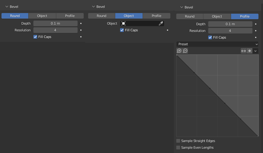 Depth : 두께 조정 Resolution : 낮을수록 각지고 높을 수록 부드러운 곡선 |