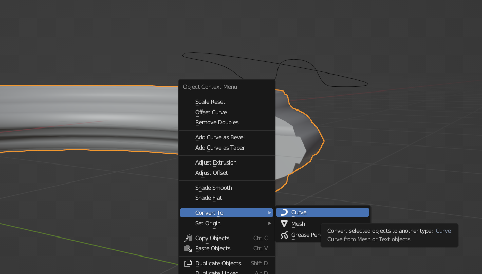 Curvefh 변경하고 싶은 경우는 Convert to ⇒ Cueve로 해주면 됩니다.