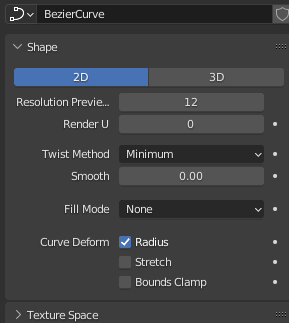 조절 가능 부분 | Depth : 두께 조정 Resolution : 낮을수록 각지고 높을수록 부드러운 곡선 |