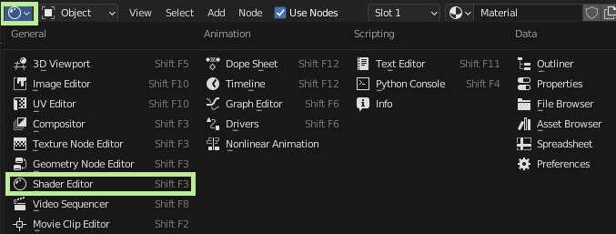 | BSDF Shader | Emission Shader | Volume Shader | Background Shader |